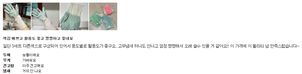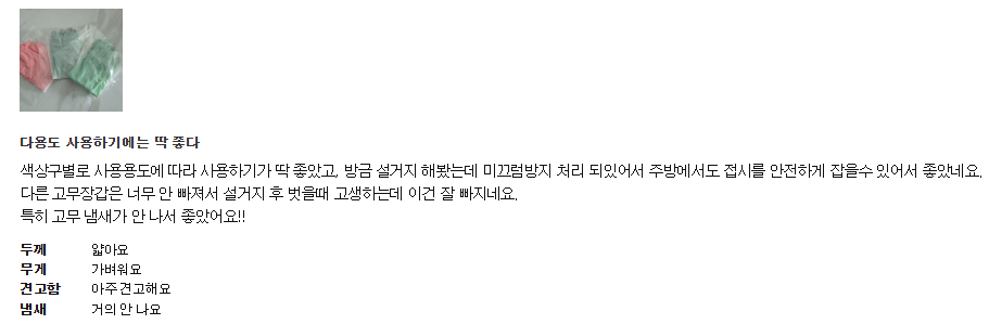 이 고무장갑의 특징이 여러가지가 있는데 그 중에 마음에 드는것 3가지를 말해본다면