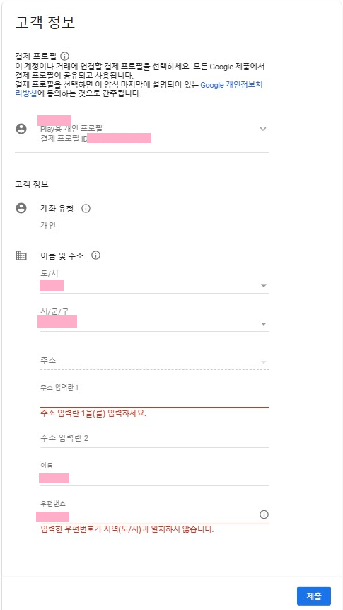 정보 입력 후 제출