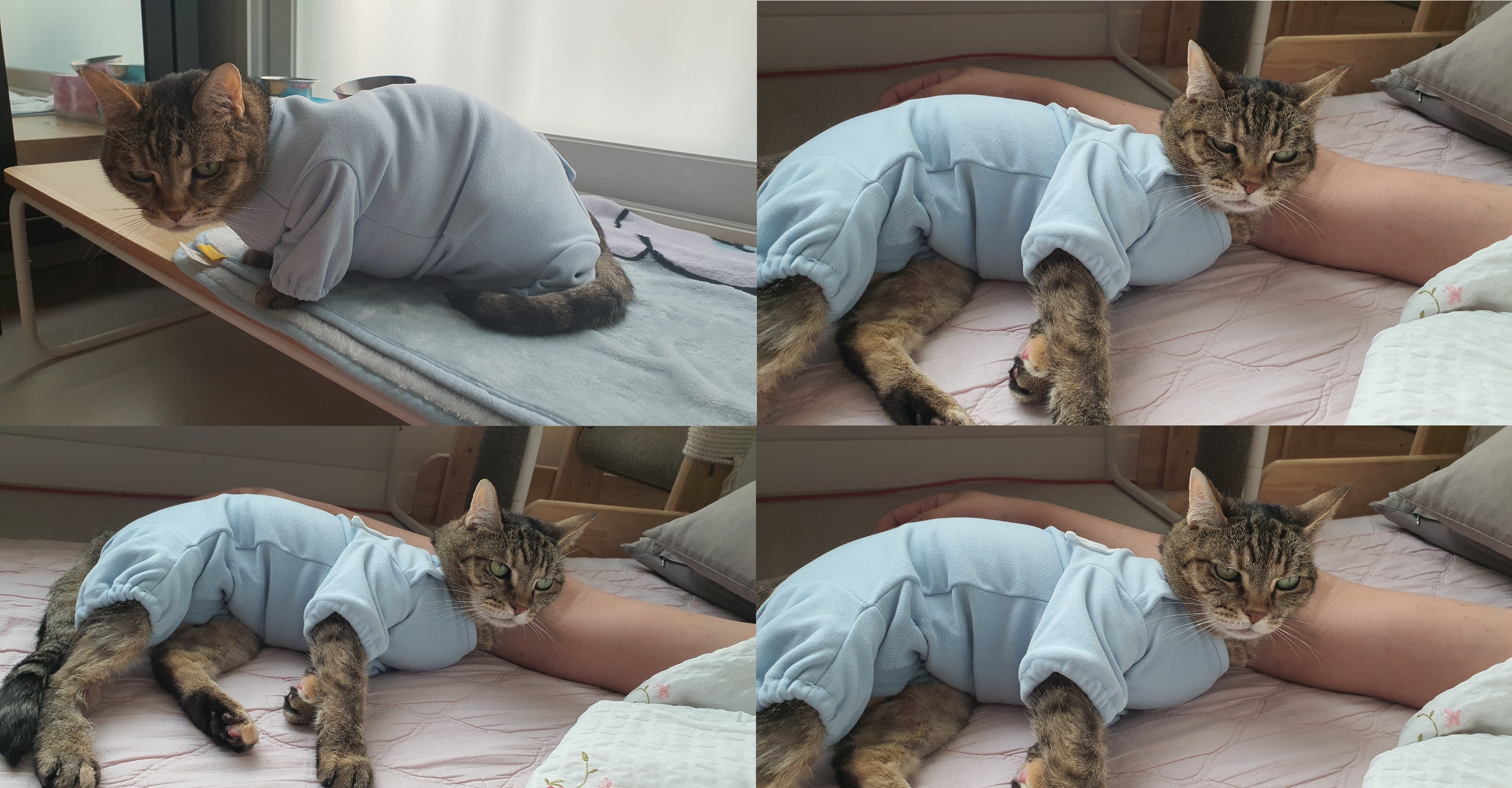 어지간해서는 옷은 입히고 싶지 않았는데 살이 짓무르고 피가 나는데 방법이 없었다.