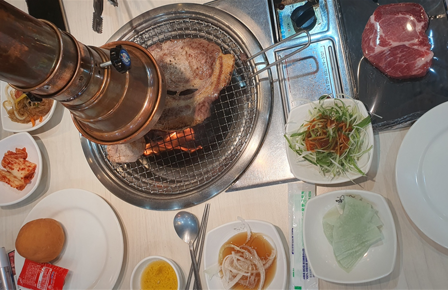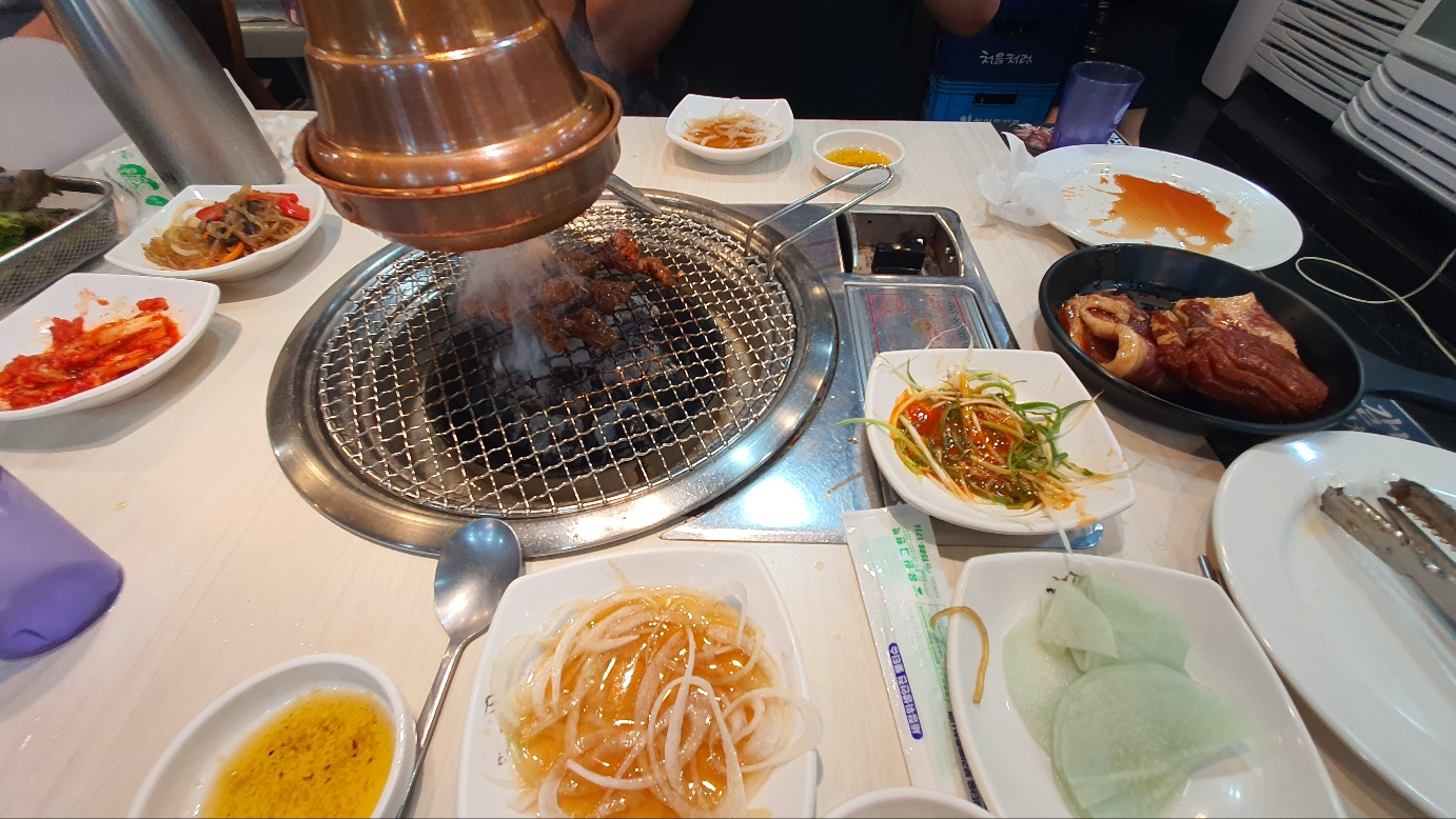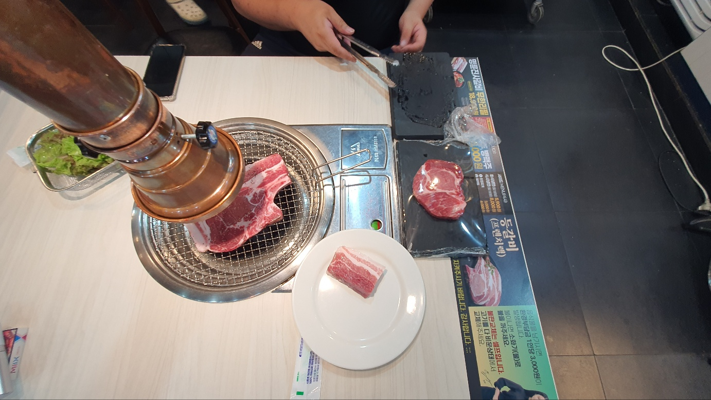 사실 고기는 대체적으로 맛있었고 화력만 좋았다면 더 먹을 수도 있었을 것 같은데 사람 미치게 하는건 여기 지점 매장 온도가 밖 온도랑 비슷했다. 사람 꽉 찼을 때가 32도, 우리 나갈 때 즈음 사람 좀 빠지니 29도인데 이 큰 매장에 에어컨이 두 개 밖에 없었고 이마저도 낡아서그런가 희망온도가 17도인데 실내온도가 29도였다.