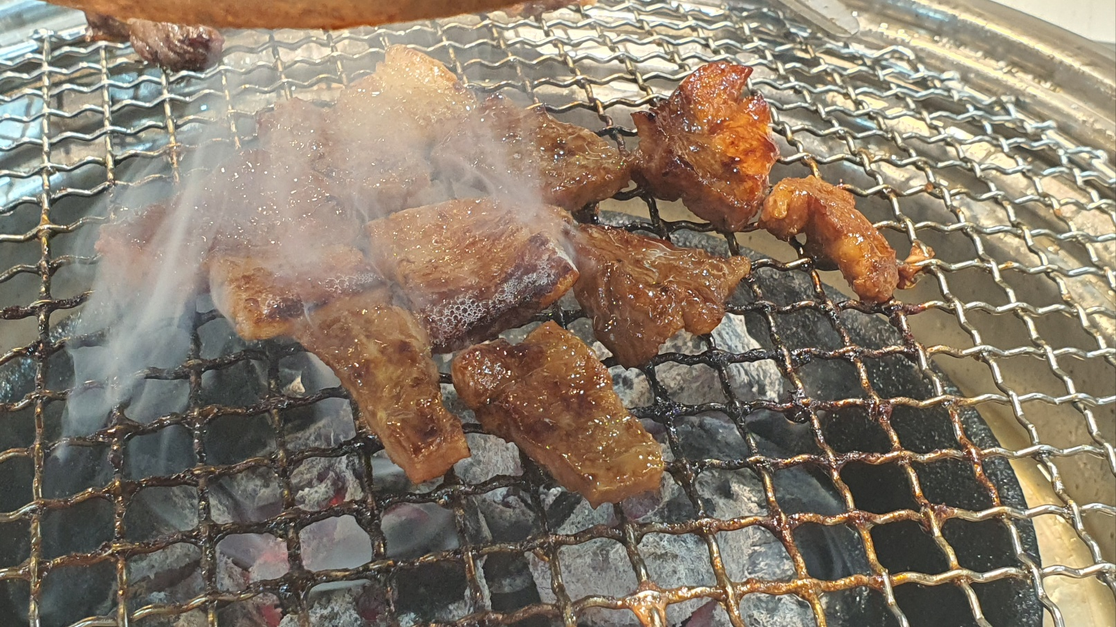 숯불이 가운데 밖에 화력지원이 되지 않아서 찔끔찔끔 가운데로만 구워먹었다. 먹다 쉬고 먹다 쉬고 하니 생각보다 얼마 못먹은거 같아서 아쉽...