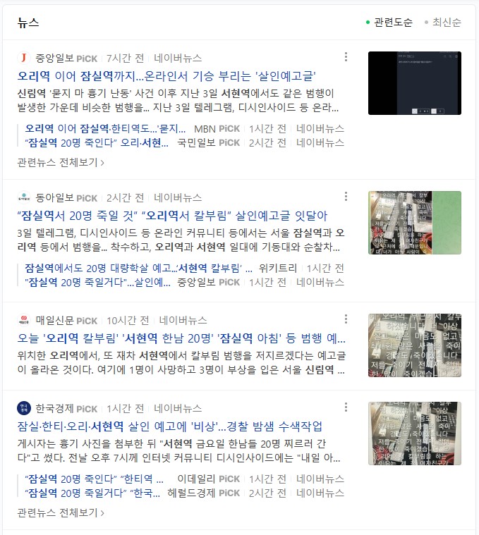 7월 21일 신림역 흉기 난동 사건 이후 2주가 채 되지 않아 모방 범죄들이 난리가 났다.