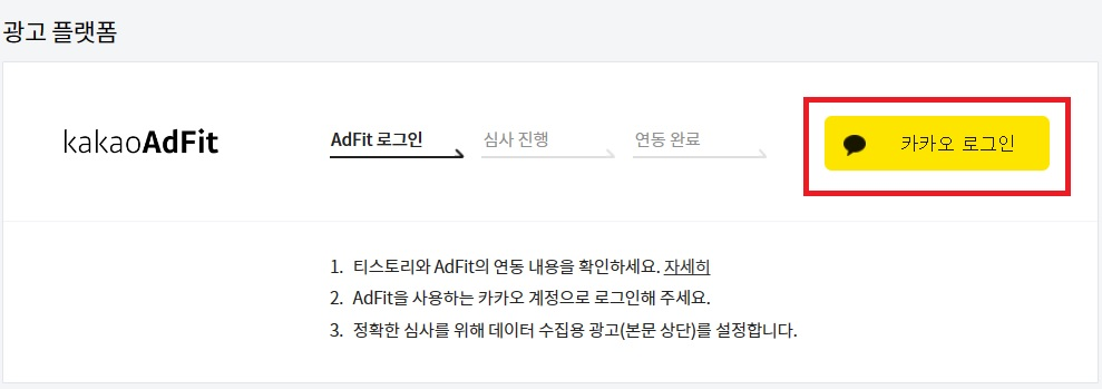 오늘은 이 4개 중에 카카오애드핏 연동을 할 텐데 먼저 각 플랫폼별 조건 및 간단한 설명을 보겠습니다.