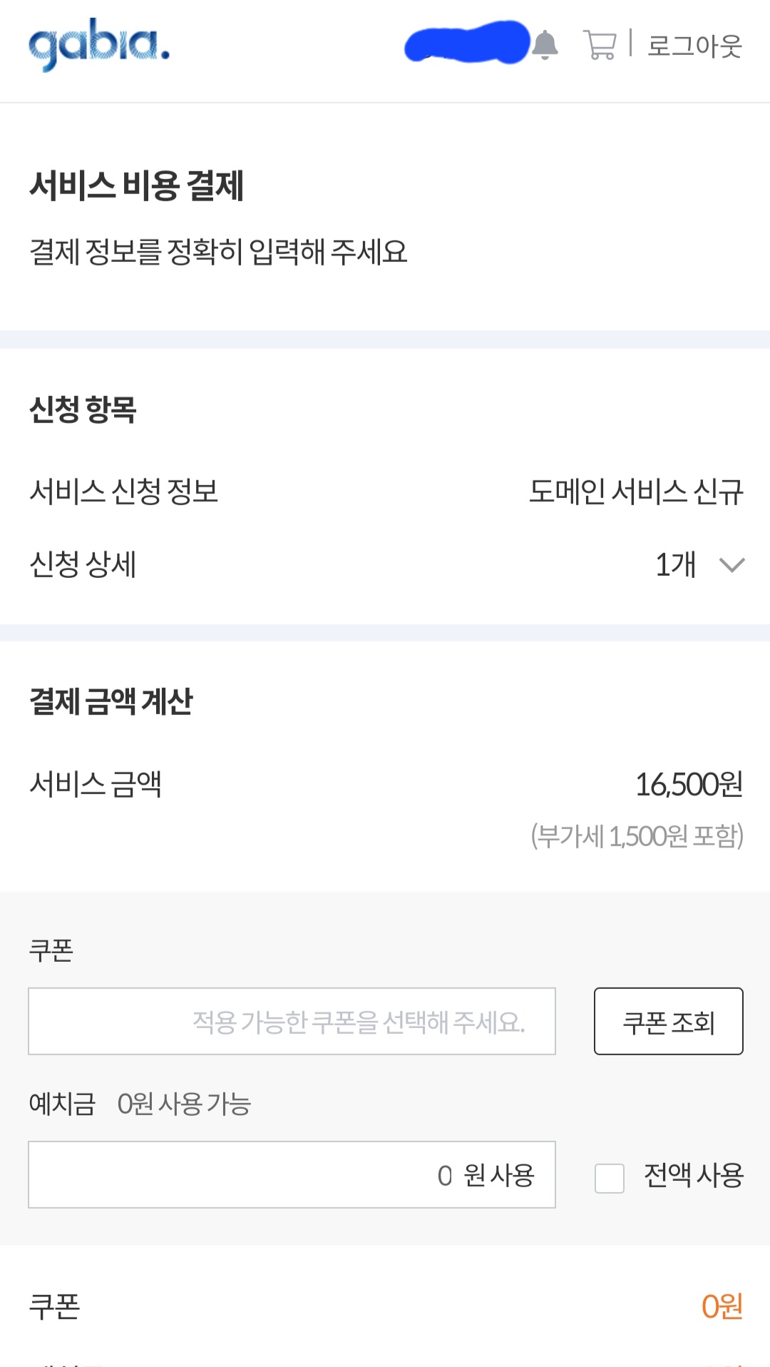 신청하기를 누르면 로그인 화면이 뜨는데 없어서 회원가입을 했습니다. 저는 간단하게 카카오로 로그인을했고 가입 후에는 도메인 등록을 위한 개인정보 입력 및 결제가 필요힙니다.