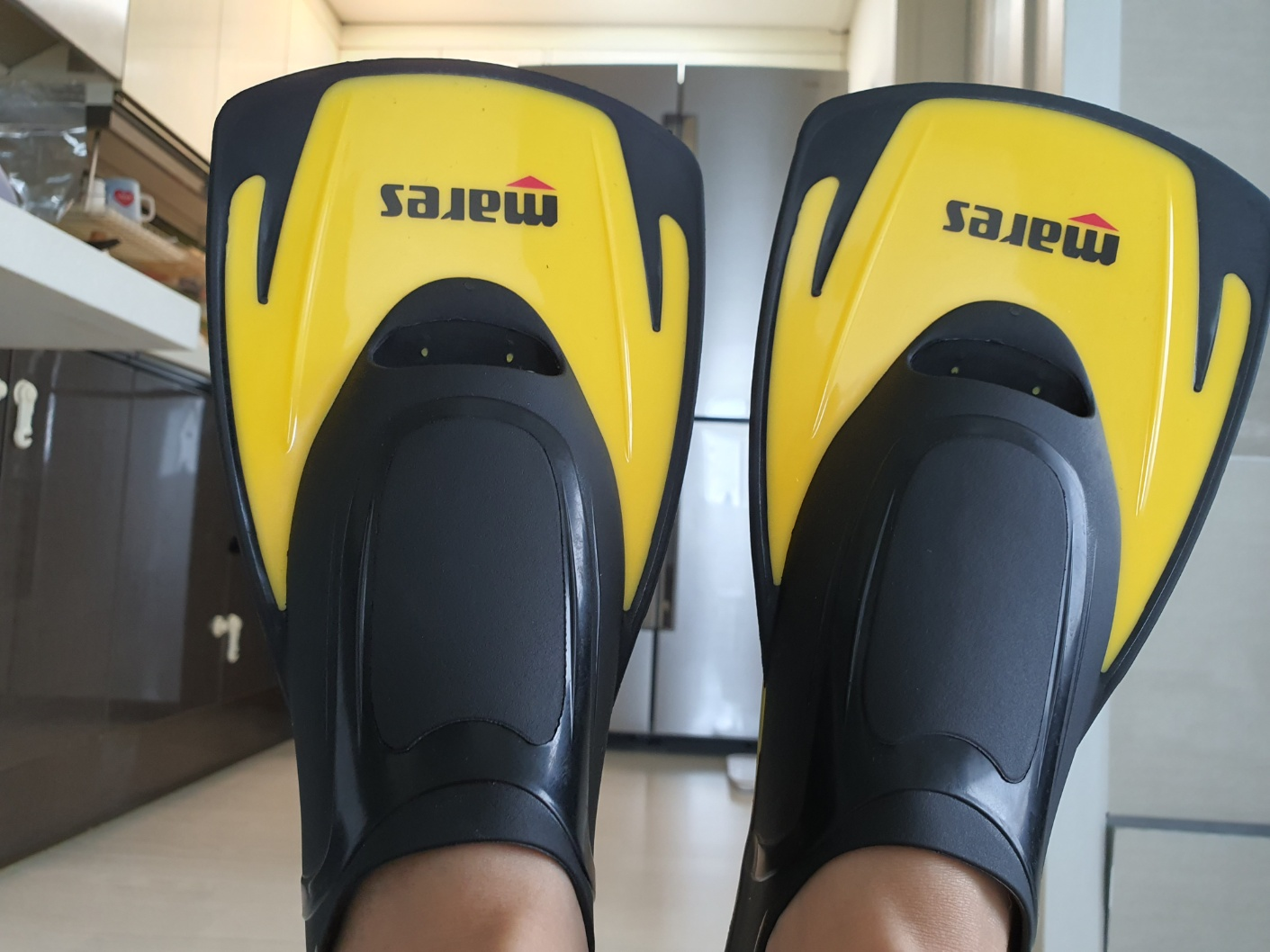 사실 노란색 오리발을 실제로 받고 나서는 분홍색 다른제품을 살걸 그랬나? 라는 생각도 잠깐 했다. 쨍한 예쁜 노란색인데 나랑 잘 안어울리는거 같기도 하고...? 사이즈도 그렇고 반품을 하는게 나을 수도 있었겠지만 수영하는데 뭐 어떤가. 착용 해보고 실제로 잘나가면 되지ㅎㅎ