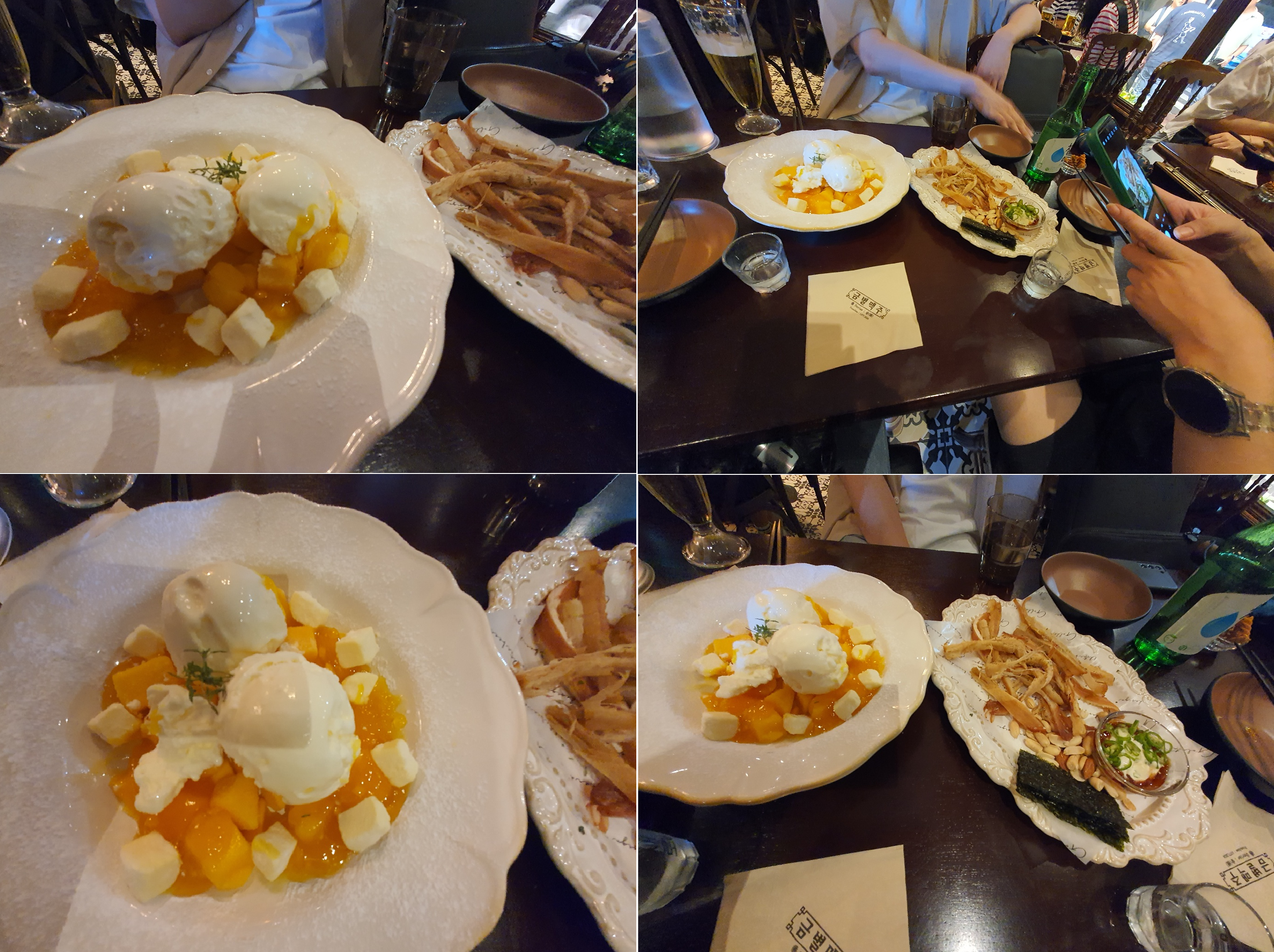 오른쪽은 교정중인 날 위한 안주란다ㅋㅋㅋ 아이스크림하고 치즈랑 망고랑 음청 맛있었다는..
