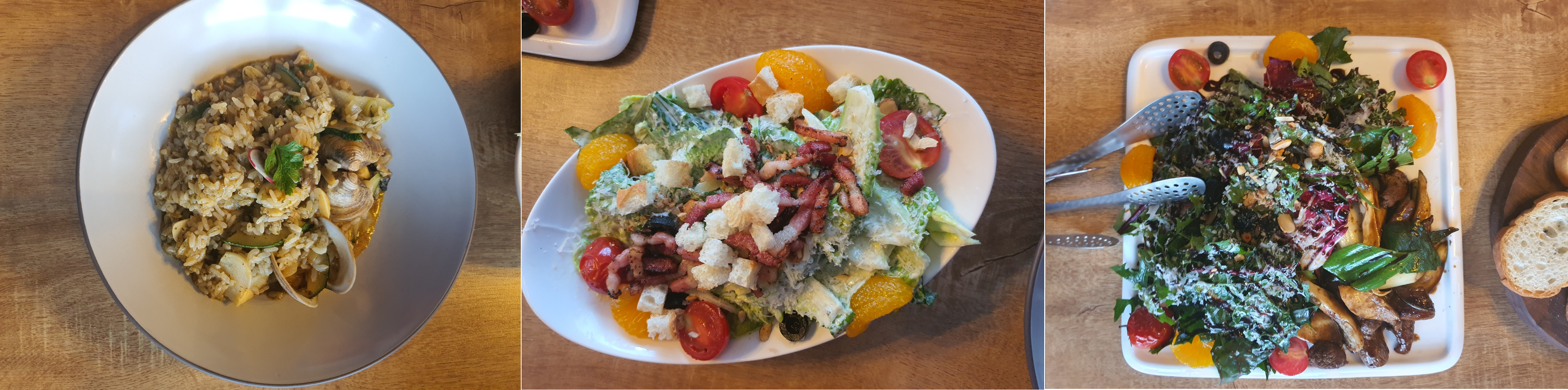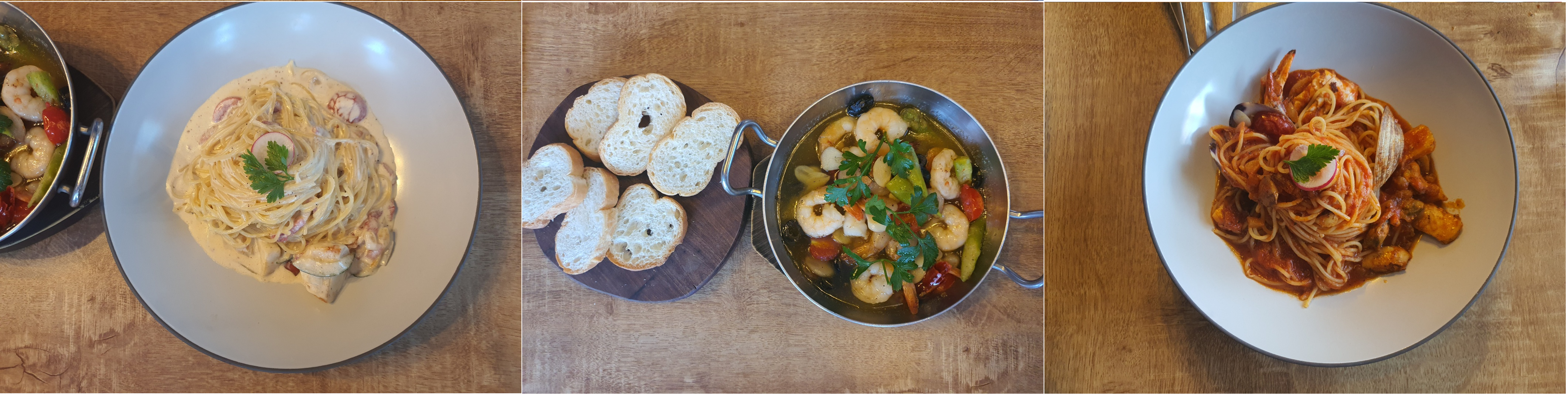 사실 어린것들 1에 해당하는 나는 메뉴를 구경도 못했다. 으르신들이 얘기하고 결정 하셔서 다 주문하고 난 후에 메뉴판 한번 보여달라고 한정도?ㅋㅋ 처음에 스프와 빵이 나오고 크림파스타, 토마토파스타, 감바스, 리조또, 스테이크샐러드, 돈까스, 시저샐러드가 나왔고 다 같이 쉐어해서 먹었다.