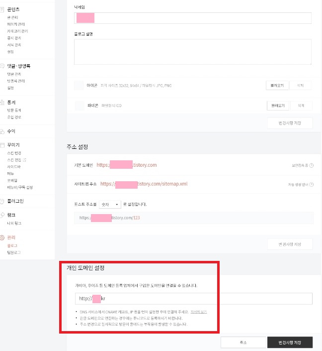 티스토리 개인 도메인 연결-2(가비아 DNS 등록 설정) (tistory.com)