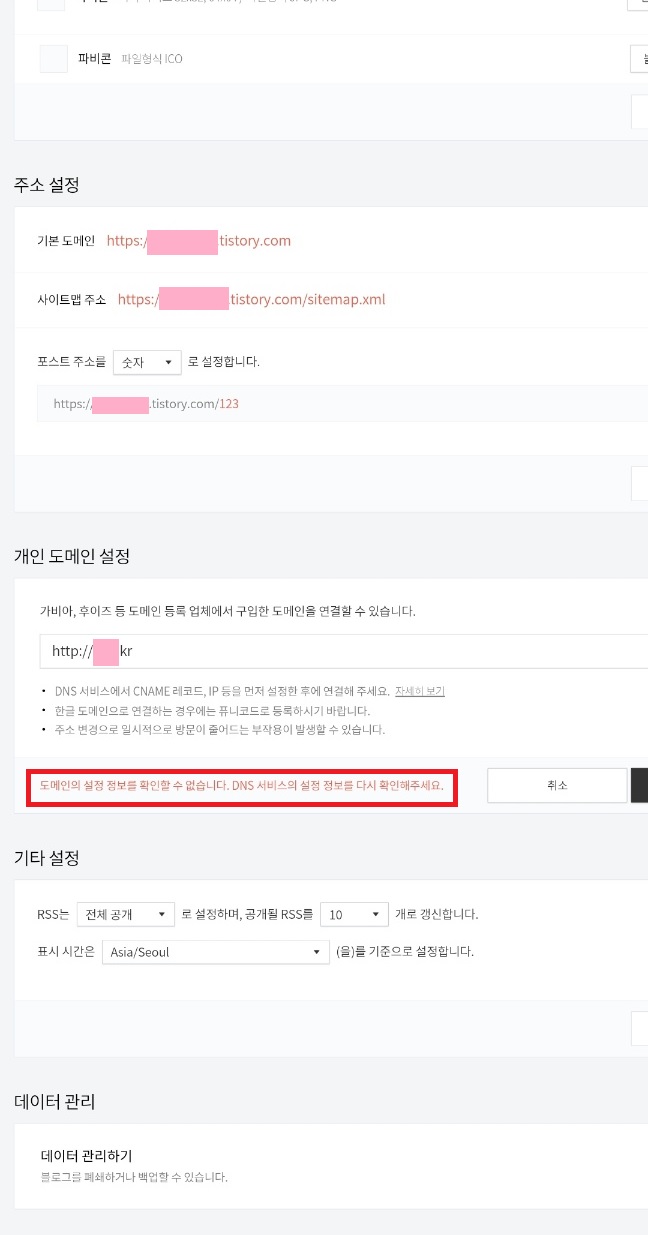 블로그에 순서는 티스토리 개인 도메인 연결-2(가비아 DNS 등록 설정)을 먼저 쓰긴 했는데 사실 난 3번 먼저 했다가 "도메인의 설정 정보를 확인 할 수 없습니다. DNS 서비스의 설정정보를 다시 확인 해주세요" 라고 해서 DNS설정이 뭐지? 하고 당황했었다. 누구한테는 쉽게 해결하는 일 일수도 있지만 나는 내가 혹시 뭘 잘못했나, 뭐가 이렇게 복잡하고 어렵나, 내가 이걸 해야하나.