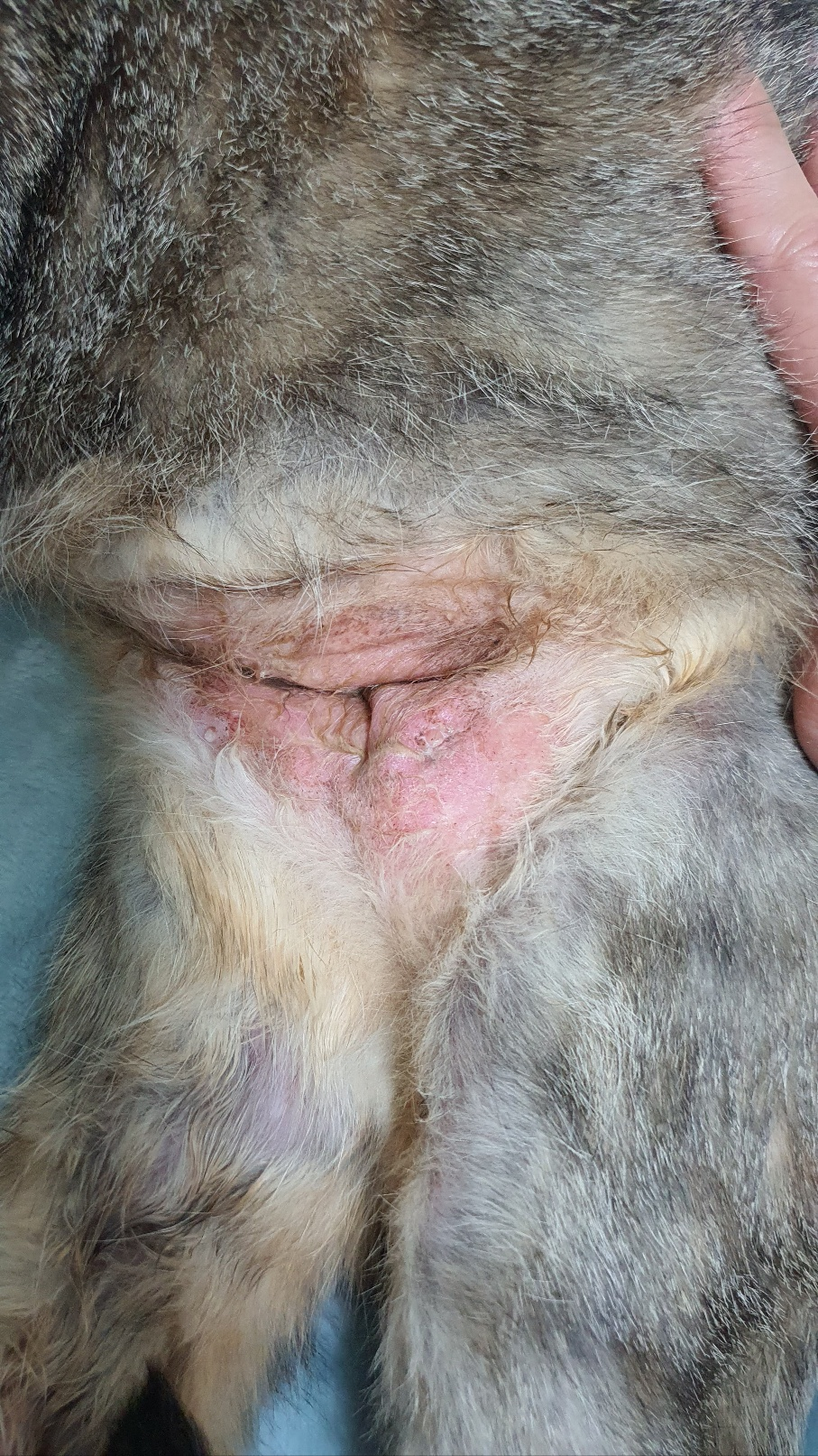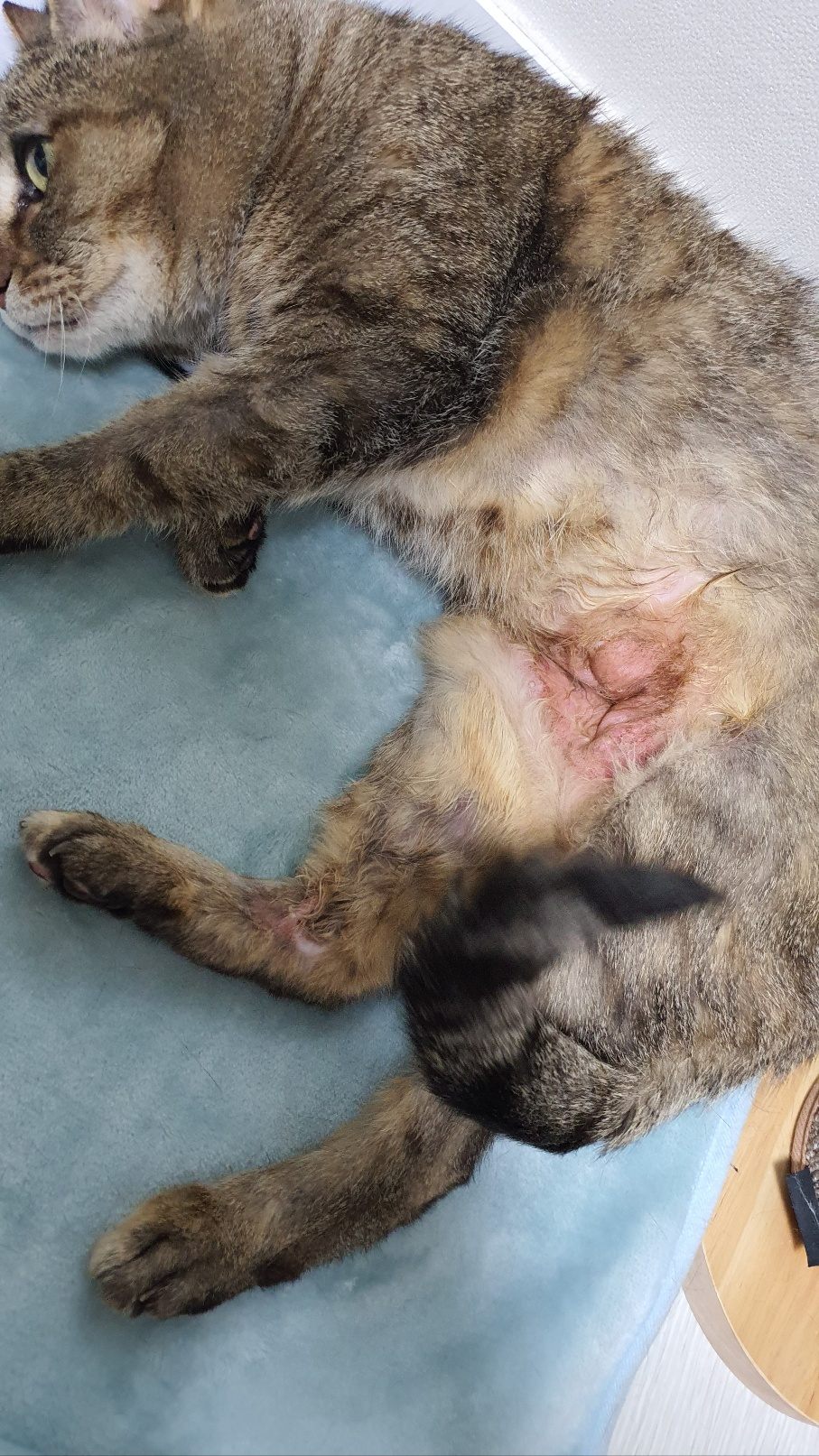 지금은 진심 더심하다... 오른쪽 발은 뼈 윤곽이 보이게 징그러울 정도로 배 전체가 진무르고 빨갛게 털이 없다.