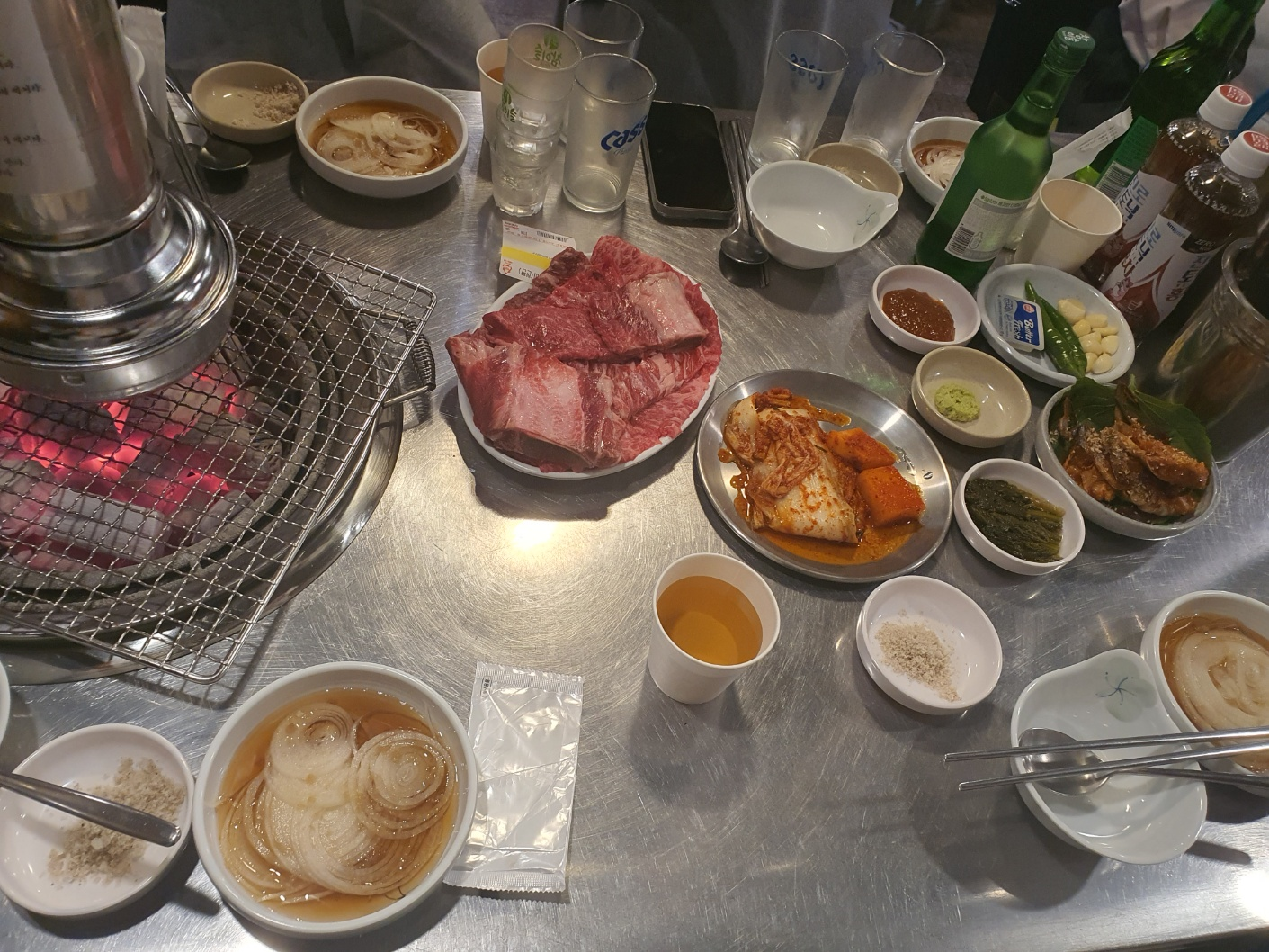 다행히 테이블은 술을 거의 마시지 않는 여직원들하고 같이 앉게 되었는데 불 앞에 앉는 바람에 고기를 구워야 한다는 귀찮음은 있었지만... 이자리 앉은건 너무 잘한일이였다.
