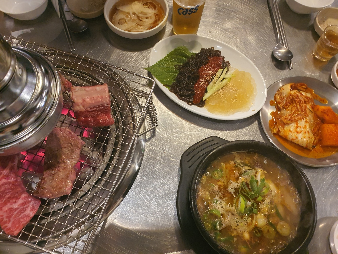 양념소갈비 1인분을 시킨걸 마지막으로 생소갈비 2판 양념소갈비 1인분, 이렇게 고기를 끝을 냈다.