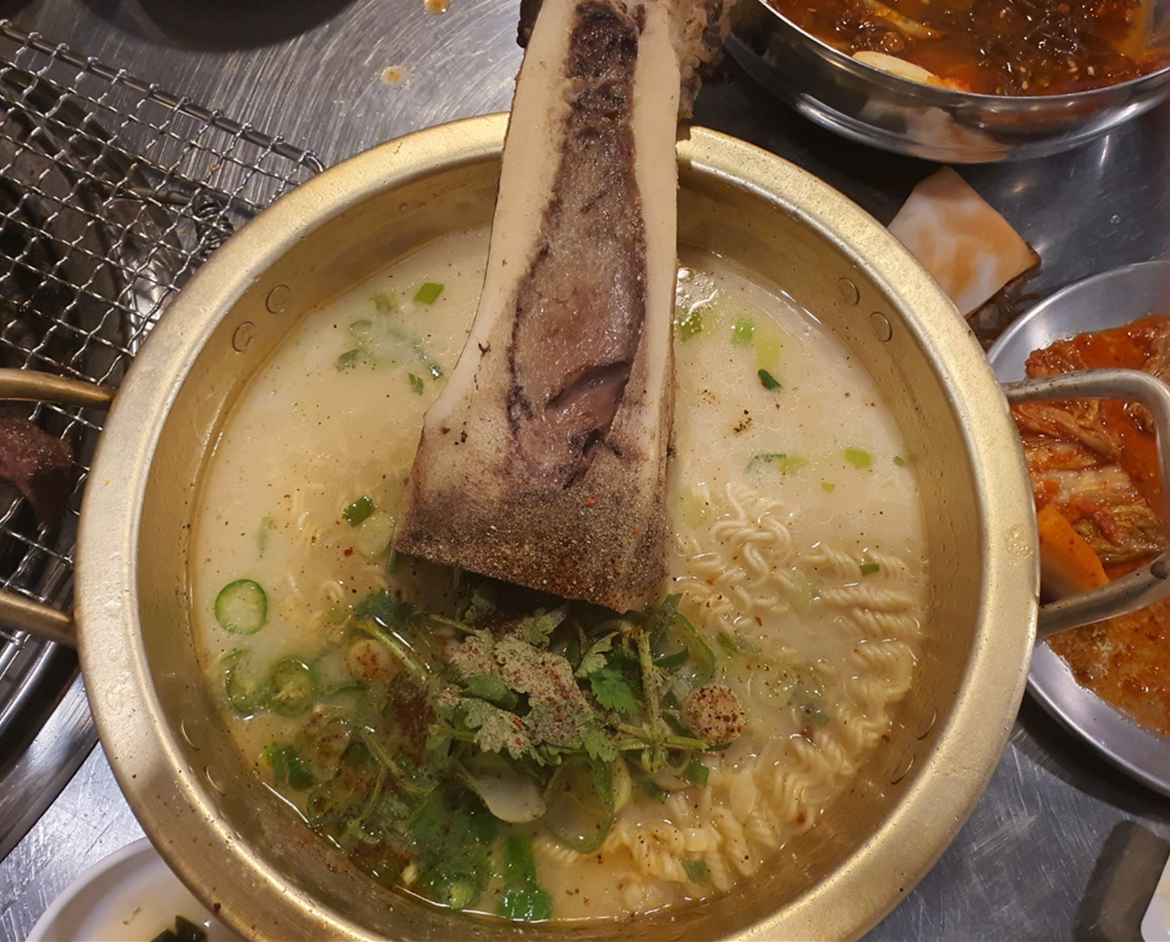 다음은 여길 왔던 사람들이 극찬했던 백골라면인데 글쎄다... 그냥 사리곰탕면에 야채 넣고 고수 한주먹 넣은맛? 하도 맛있다고 얘기를 들었던지라 생각보다 별로였는데 이걸 추천했던 직원중 한명이 당시에는 술을 엄청나게 많이 마셨고 마지막에 이걸 먹으니 너무 맛있었다고 해서 우리가 술을 안마셔서 이게 별로였나보다 하고 납득하고 넘어갔다.