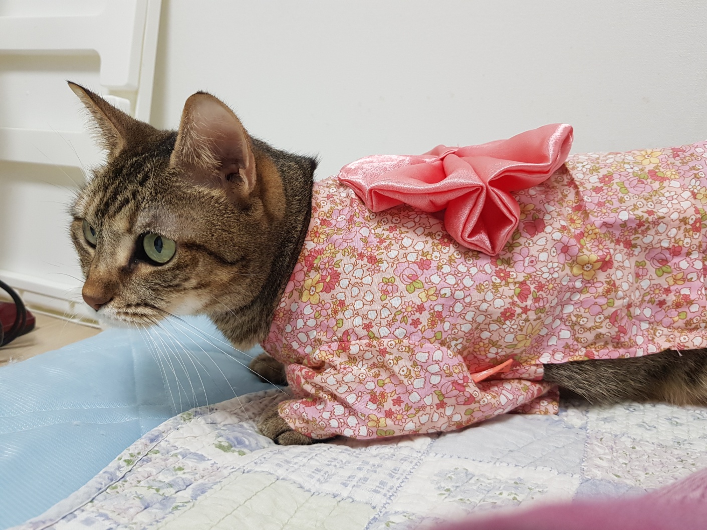 넥카라 종류별로 하는데도 그루밍을 하겠다는 집념이 어마무시해서 배까지 싹싹 다 햝아서 덕분에 2주 넥카라 한 상처는 고대로 돌아왔다. 병원 약을 먹이는데도 이번 그루밍 상처는 생각보다 너무 오래가서 나도 지칠대로 지친 상태.. 한달동안을 온 신경을 해한테 쏟고 있다보니 지난주에는 애한테 화를 내기까지 했고 자괴감에 나까지 우울증이 올것 같다. 결국은 애가 고장나는걸 알면서도 환묘복을 입혔는데 미안한건 미안한거고 너무 귀엽다 ㅠㅠㅠㅠㅠㅠㅠㅠㅠㅠㅠ 고양이는 몸 전체를 사용해서 점프를 하는데 옷을 입게 되면 점프를 하는 상하이동이 되지 않고 움직임에 제약이 생기기 때문에 잘못된 움직임이 반복해서 일어나면 근육에 무리가 가고 점프로 인해 부상을 입을 수도 있다고 한다. 어지간해서는 옷은 입히고 싶지 않았는데 살..