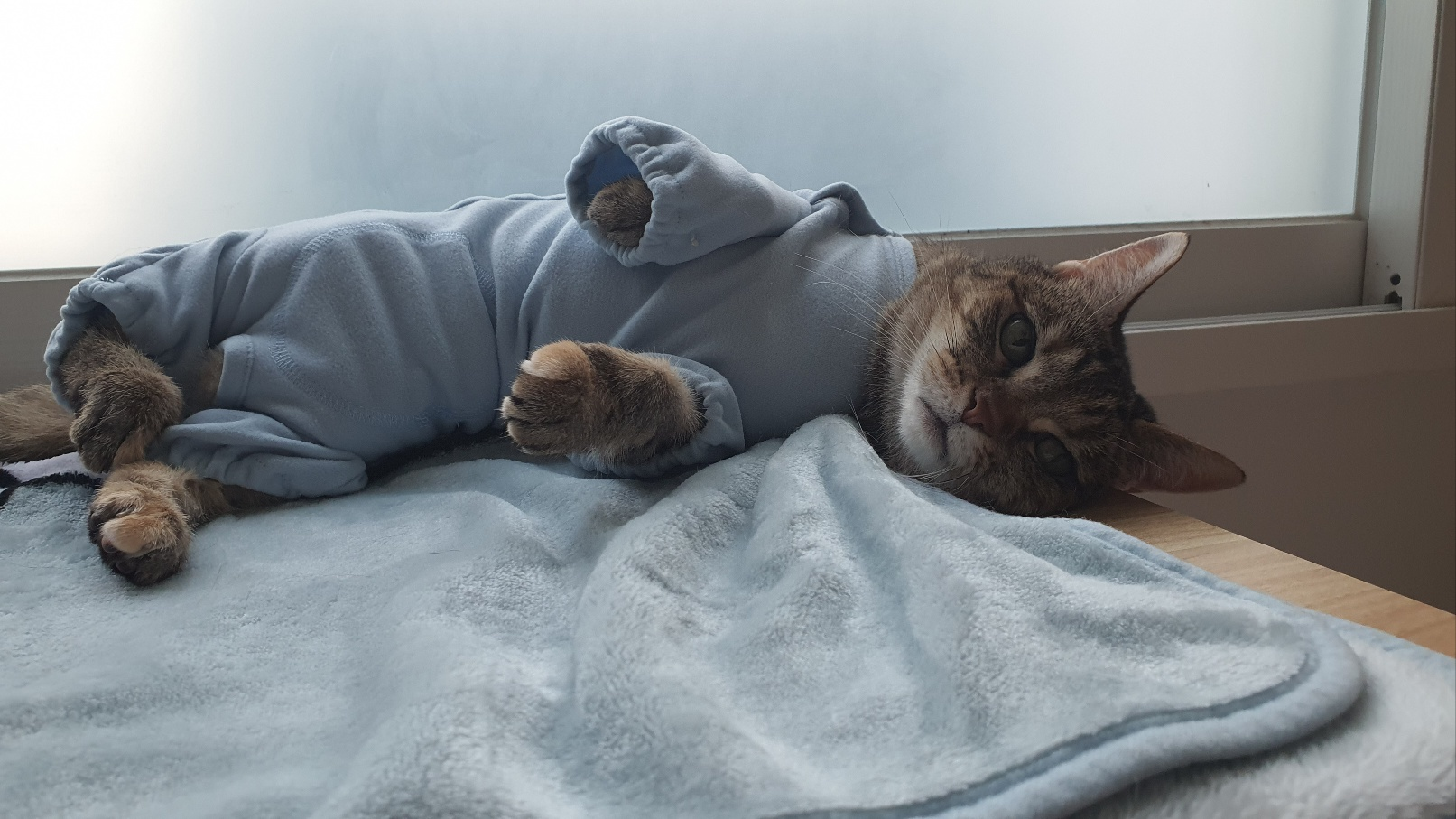 고양이는 몸 전체를 사용해서 점프를 하는데 옷을 입게 되면 점프를 하는 상하이동이 되지 않고 움직임에 제약이 생기기 때문에 잘못된 움직임이 반복해서 일어나면 근육에 무리가 가고 점프로 인해 부상을 입을 수도 있다고 한다.