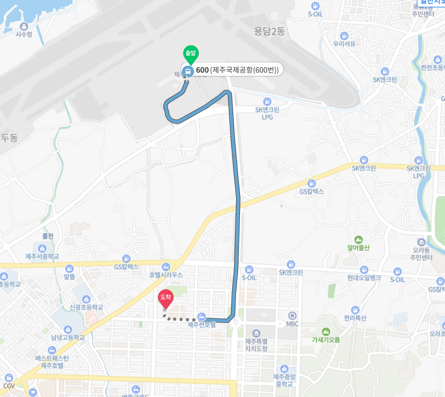 우리는 버스를 타고 가기로 해서 공항에서 600번을 타고 제주 썬호텔에서 하차 후에 5분 정도 걸어서 국수집에 도착 했다.
