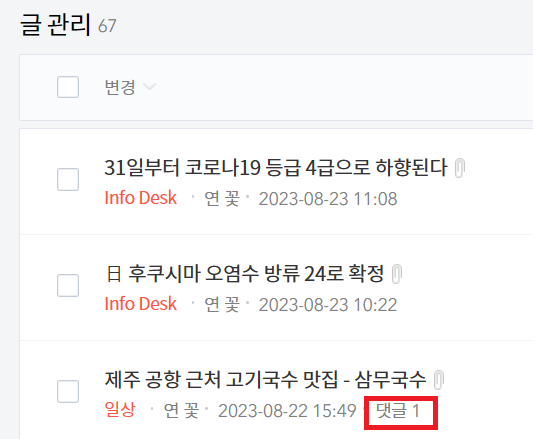 아니 분명 글관리에 가면 보이는데 왜 댓글관리를 누르면 또 없지?