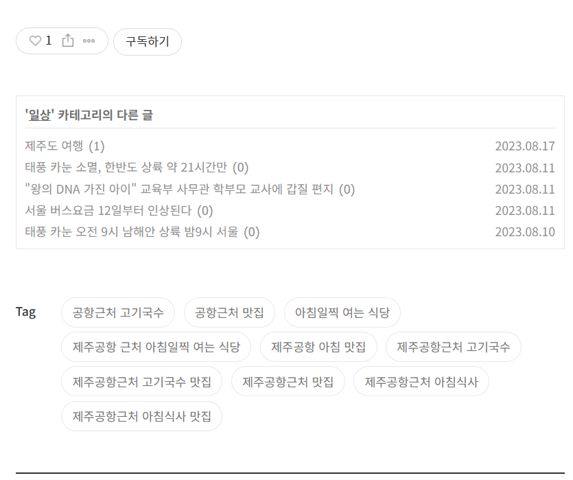 아침에 회사를 와서 티스토리 접속을 하고보니 나한테도 댓글이 달렸길래 확인을 하려고 클릭을 했는데 글을 아무리 찾아봐도 댓글이 어디있는지 보이지가 않는다.