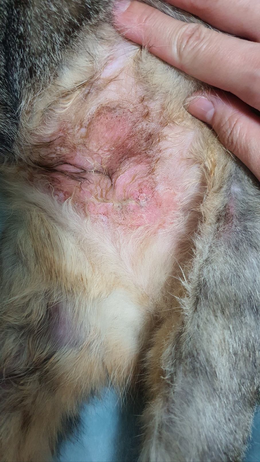 지금은 진심 더심하다... 오른쪽 발은 뼈 윤곽이 보이게 징그러울 정도로 배 전체가 진무르고 빨갛게 털이 없다.